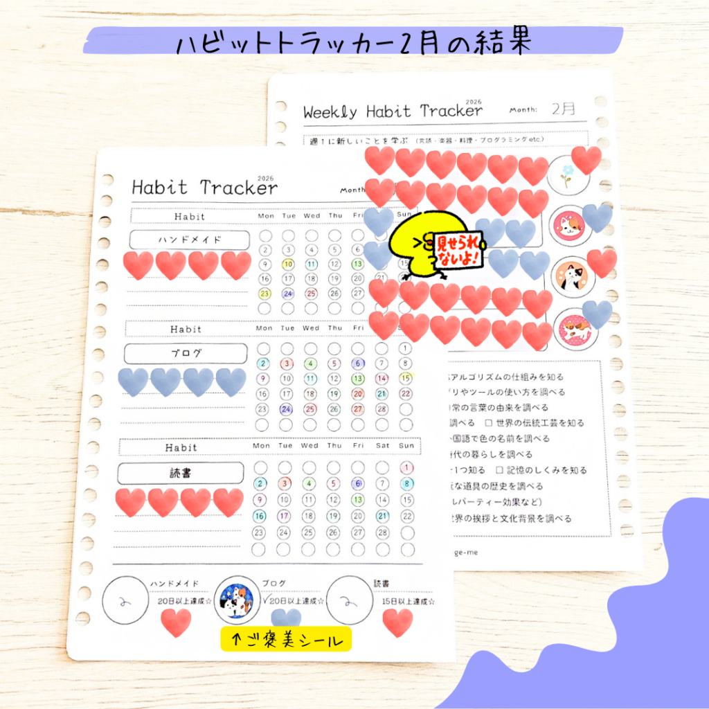 2026年1月は親戚の入院、そして2月はコロナに感染してしまい、1月に続いて2月もハビットトラッカーが乱れに乱れてしまいました(😅)