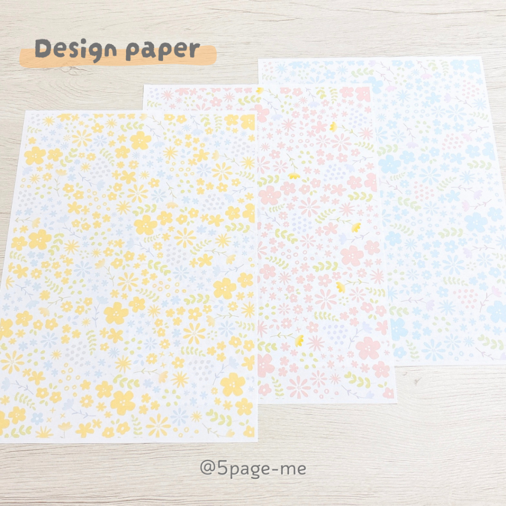 今回作ったのは、黄色・ピンク・水色をベースにした、やさしい雰囲気の花柄デザインペーパー3種類です。